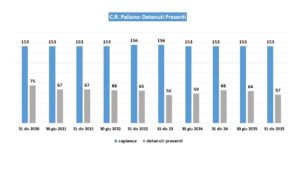 • Spazio minimo a disposizione per detenuto: adeguato