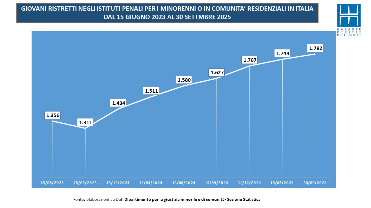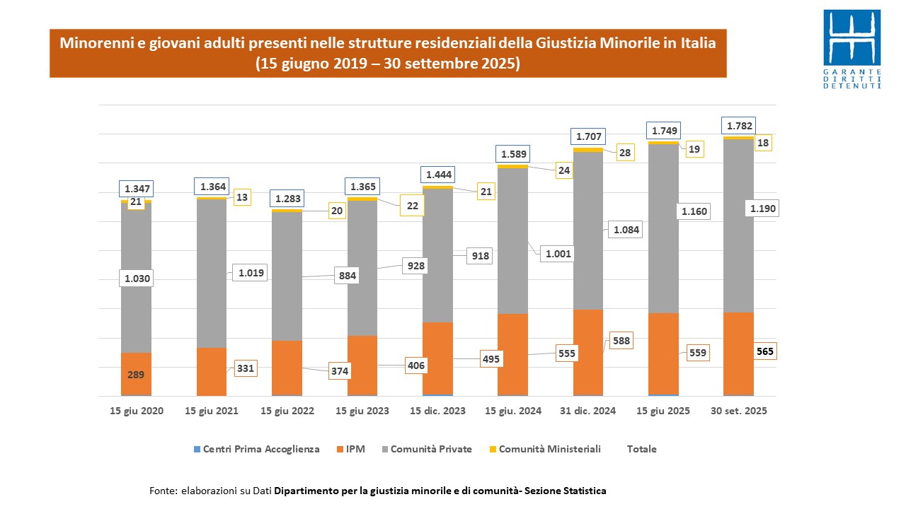 Infatti, se tra il dicembre 2019 e il giugno del 2023 i numeri delle persone rinchiuse in IPM o in comunità sono rimasti sostanzialmente stabili, da settembre 2023 e nei due anni successivi si è verificato un incremento del 36%.