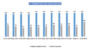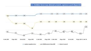 • Detenuti presenti: 81 di cui 25 a custodia attenuata, 56 semiliberi (25/3/2024)