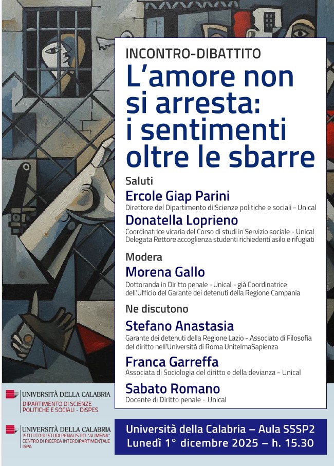 Incontro-dibattito all'Università della Calabria con la partecipazione del Garante Anastasìa