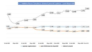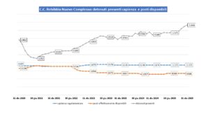 - Spazio minimo a disposizione per detenuto: come previsto da normativa. Critico in caso di sovraffollamento.