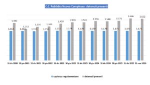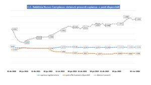 - Spazio minimo a disposizione per detenuto: come previsto da normativa. Critico in caso di sovraffollamento.