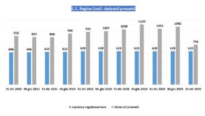 - Spazio minimo a disposizione per detenuto: appena sufficiente