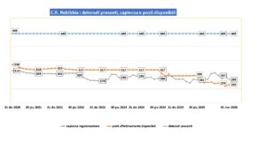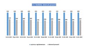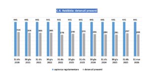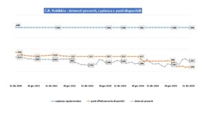 Numero personale custodia: 189 previsti – 167 Amministrati di cui 132 operativi Gli effettivi in forza a giugno 2025: 110