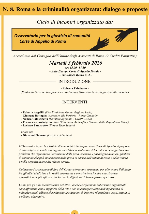Incontro organizzato dall'Osservatorio per la giustizia di comunità della Corte d'appello di Roma