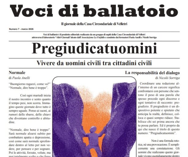 È stato pubblicato il numero 7 di Voci di Ballatoio, il giornale realizzato dalla redazione composta da detenuti della Casa circondariale di Velletri nell’ambito del laboratorio editoriale “Altri Giornali”, ideato dall’Associazione La Farfalla e coordinato da Paola Anelli e Nicolò Sorriga.